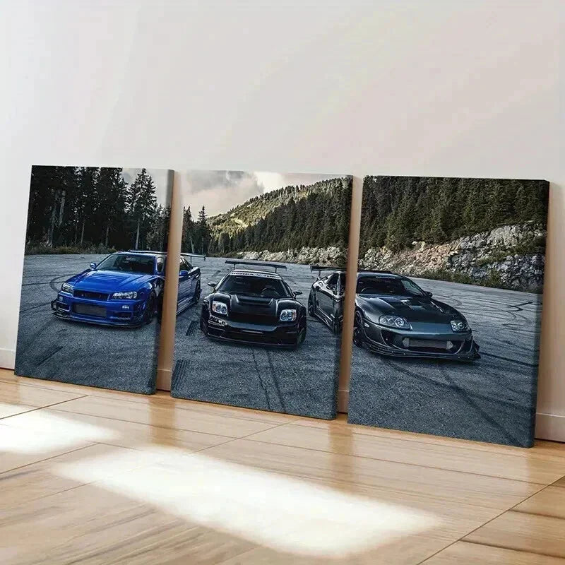 3pcs Modern Vehicle Sports Car & Supercar Wall Art Set Canvas Framed 40x60cm - High Quality Print 100% Australian Made Wall Canvas Ready to Hang
