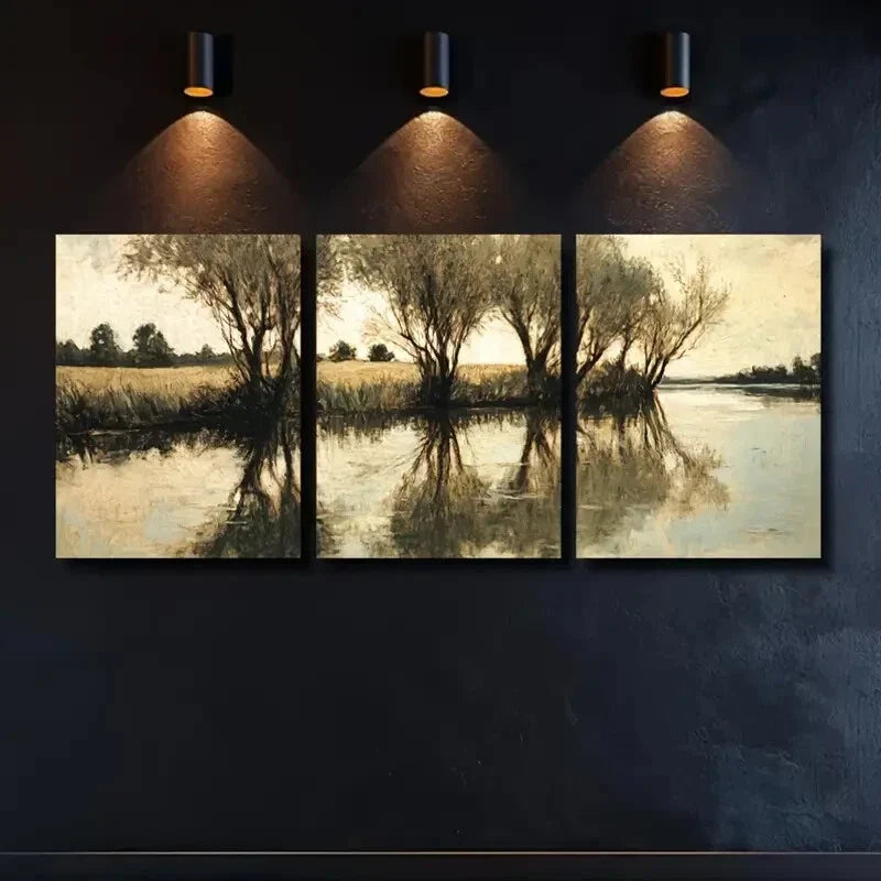 3pcs Modern Willow Tree Reflection Nature Metal Print Ready to Hang Art