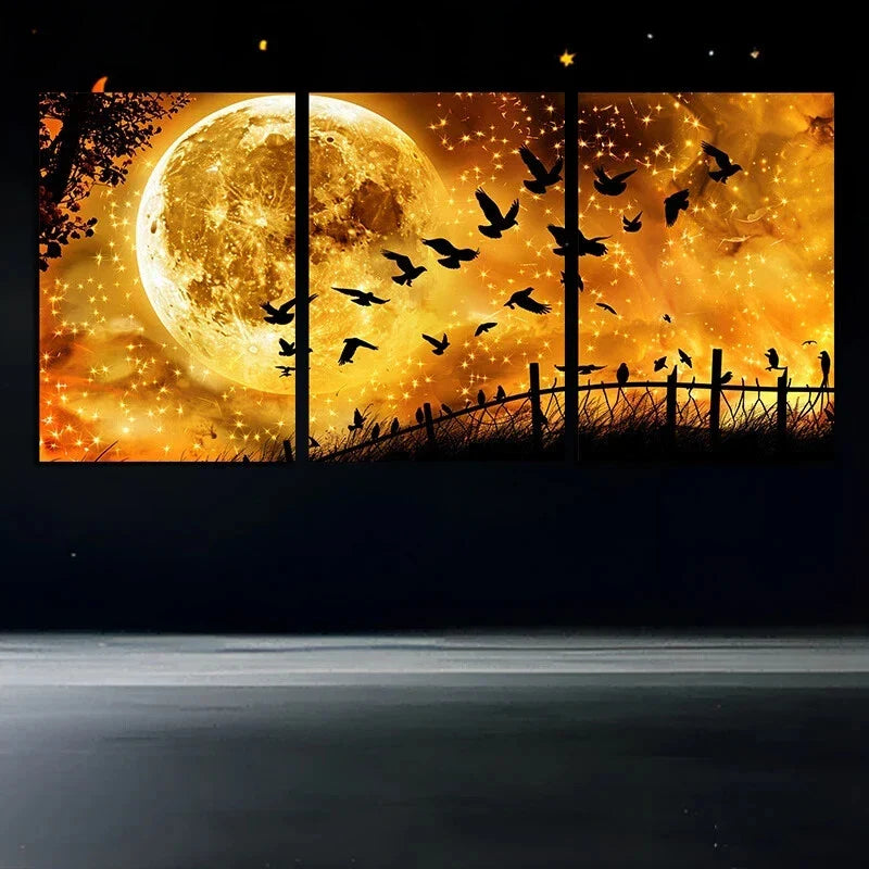 3pcs Moon and Birds Silhouette Metal Print Ready to Hang Art