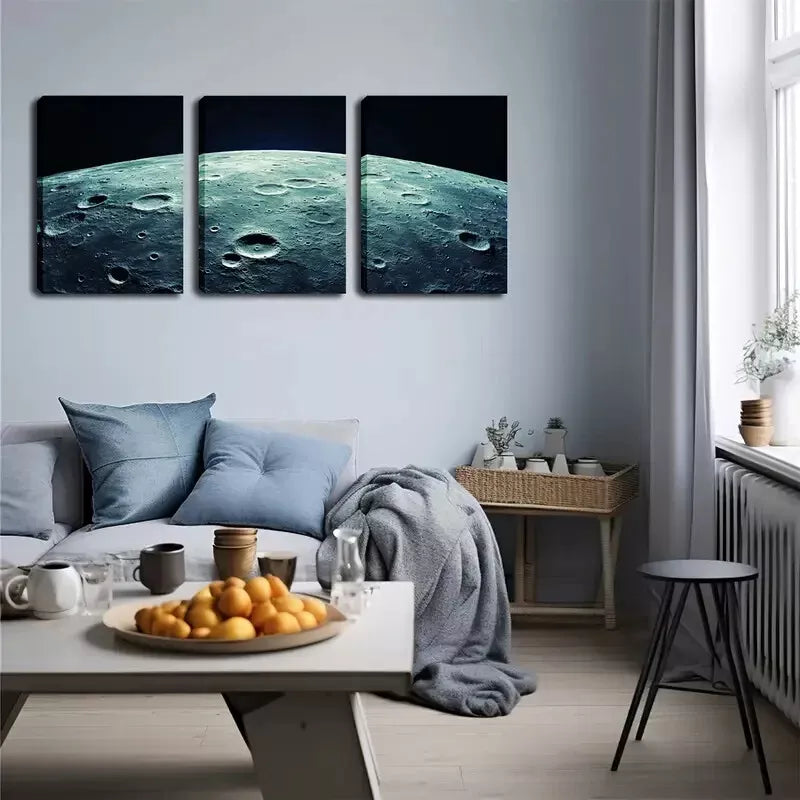3pcs Moon Crater on The Moon Wall Art Set Canvas Framed 40x60cm - High Quality Print 100% Australian Made Wall Canvas Ready to Hang