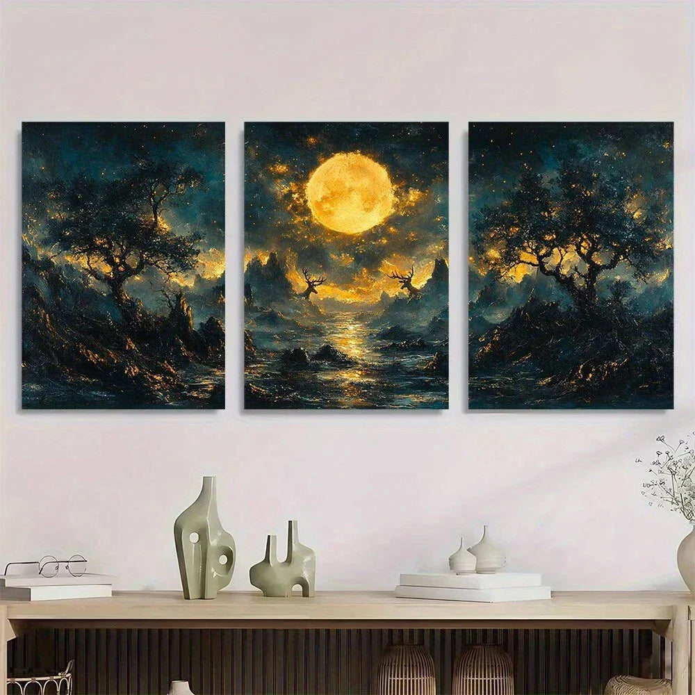 3pcs Moonlit Witches Ritual Nighttime Metal Print Ready to Hang Art