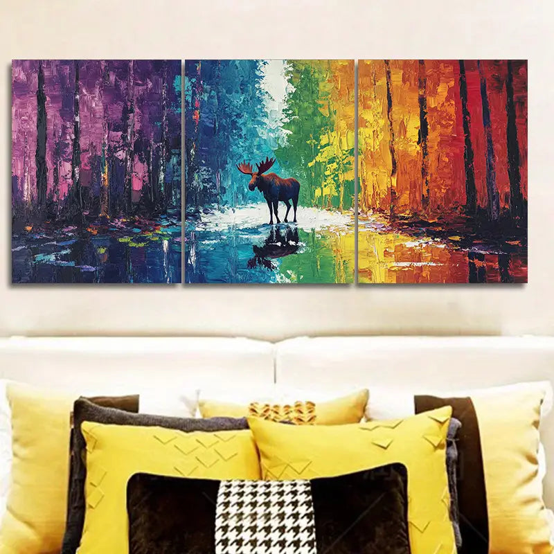 3pcs Moose in the Forest Metal Print Ready to Hang Art