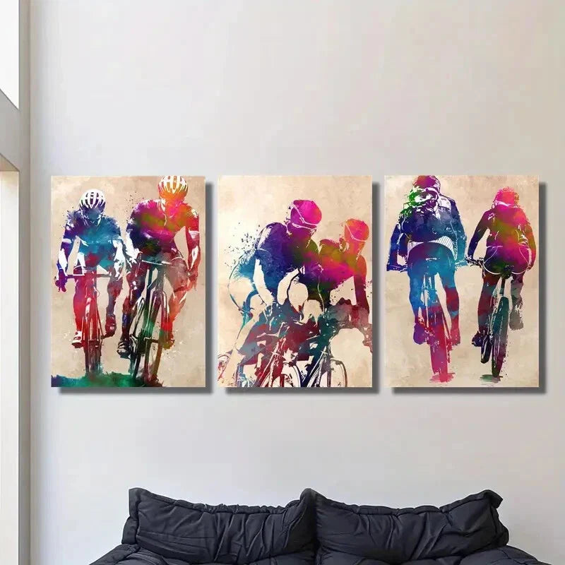3pcs Mountain Bike Watercolor Art, Bicycle Metal Print Ready to Hang Art