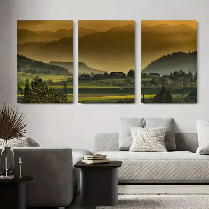 3pcs Mountainous View with Golden Sunset Metal Print Ready to Hang Art