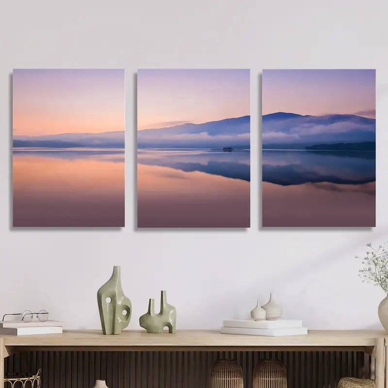3pcs Mountains, Sunrise, Fog, Lake, Reflection Metal Print Ready to Hang Art