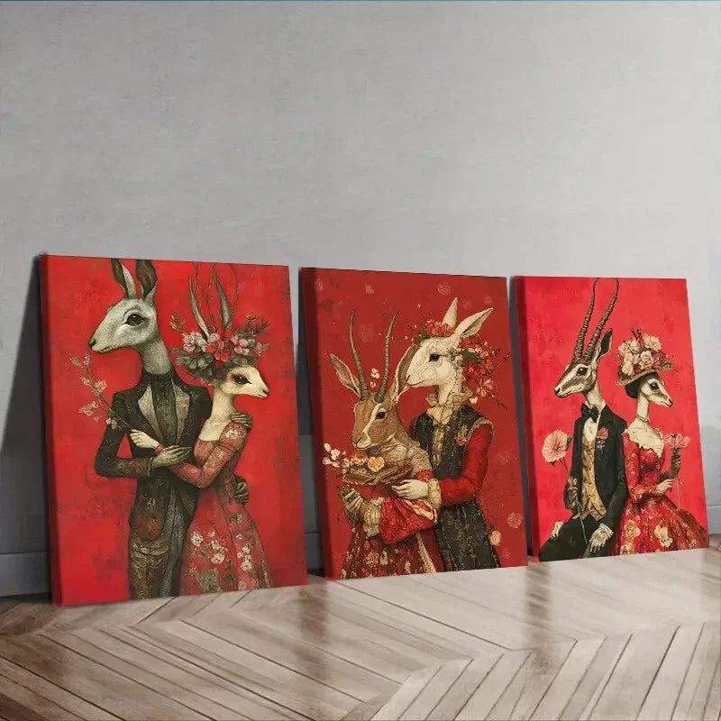 3pcs Mr. Rabbit, And Mrs Rabbit Couple Wall Art Set Canvas Framed 40x60cm - High Quality Print 100% Australian Made Wall Canvas Ready to Hang