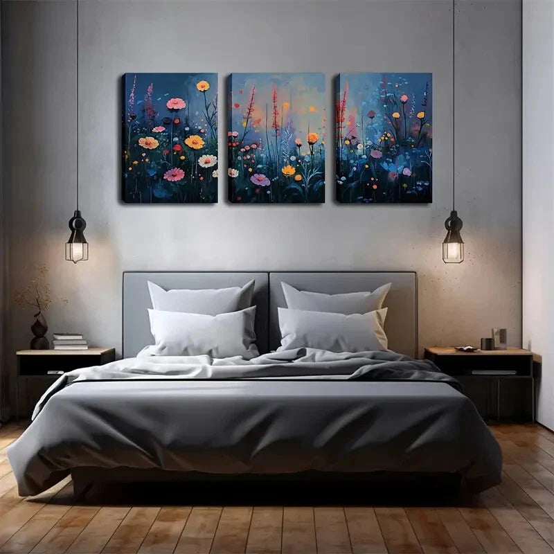 3pcs Multi-Color Flowers Bloom Night Perfect Wall Art Set Canvas Framed 40x60cm - High Quality Print 100% Australian Made Wall Canvas Ready to Hang