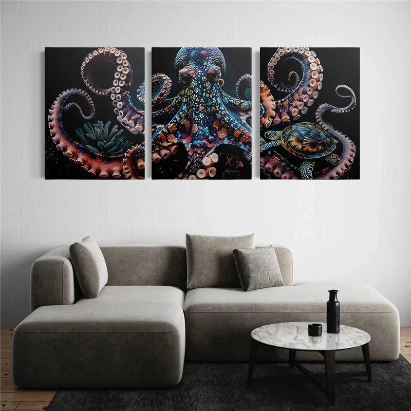 3pcs Multicolour Octopus Sea Animal Metal Print Ready to Hang Art