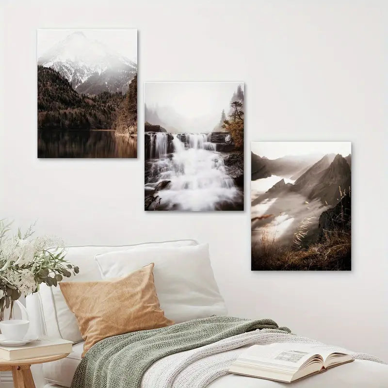 3pcs Multnomah Waterfalls Nature, Serene Mountain & Forest Metal Print Ready to Hang Art
