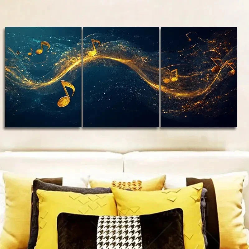 3pcs Musical Notes & Abstract Golden Swirl Metal Print Ready to Hang Art