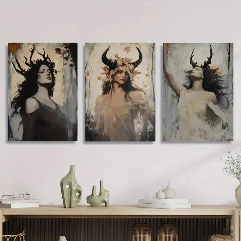3pcs Mysterious goddess poster, Mucha Metal Print Ready to Hang Art