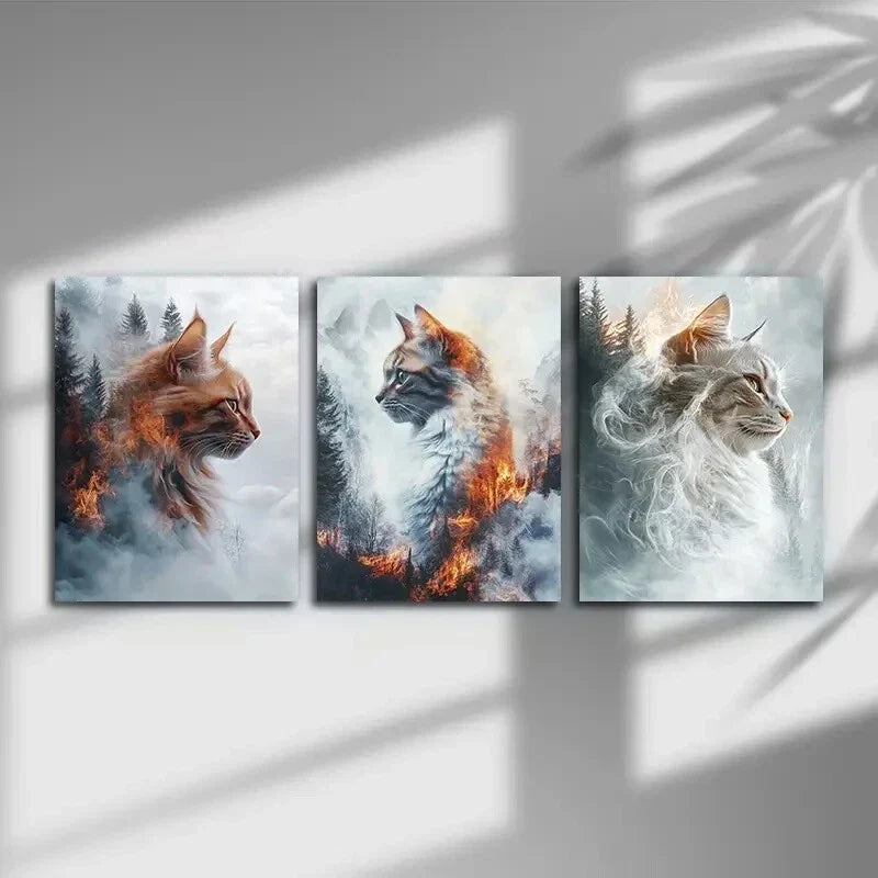 3pcs Mystical Cats in Nature Mystical Metal Print Ready to Hang Art