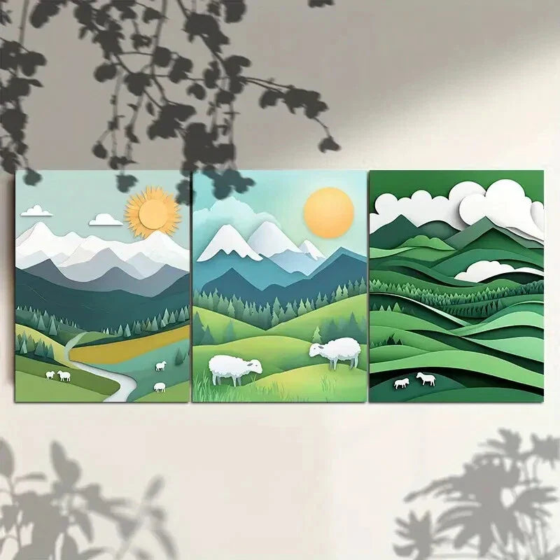 3pcs Nature and Landscape Vibrant Relief Metal Print Ready to Hang Art