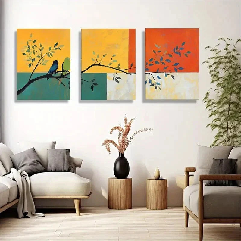 3pcs Nature-Inspired Birds And Branch Abstract Metal Print Ready to Hang Art