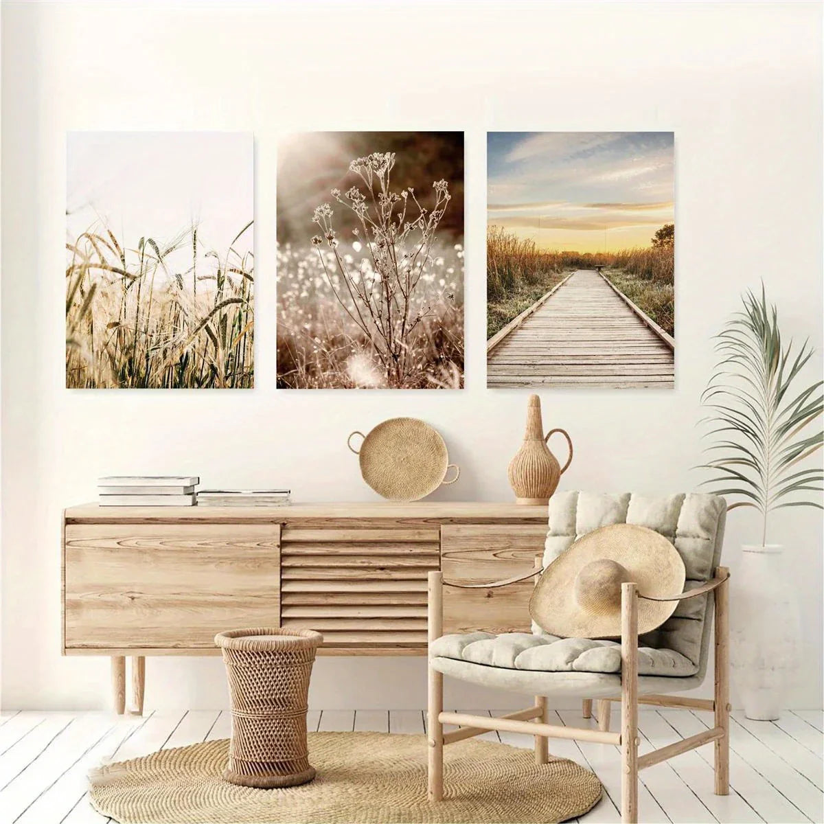 3pcs Nature-Inspired Plants and Pier pathway Metal Print Ready to Hang Art