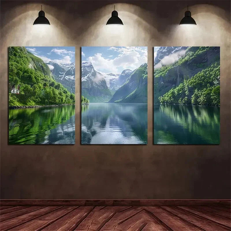 3pcs Nature-Inspired Scenic Mountain and Lake Metal Print Ready to Hang Art