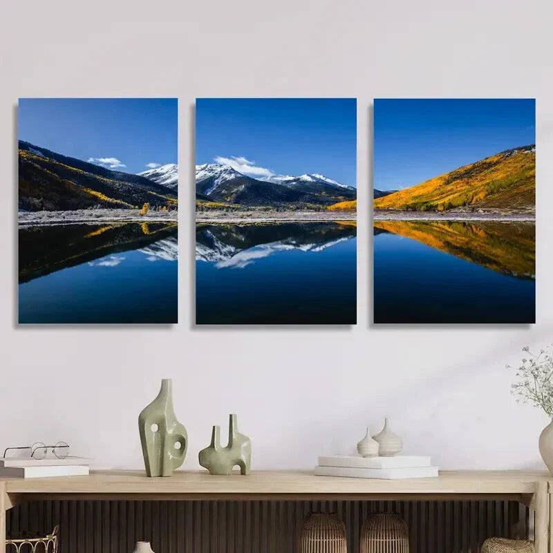 3pcs , Nature scenery, lakes, mountains, forest Metal Print Ready to Hang Art