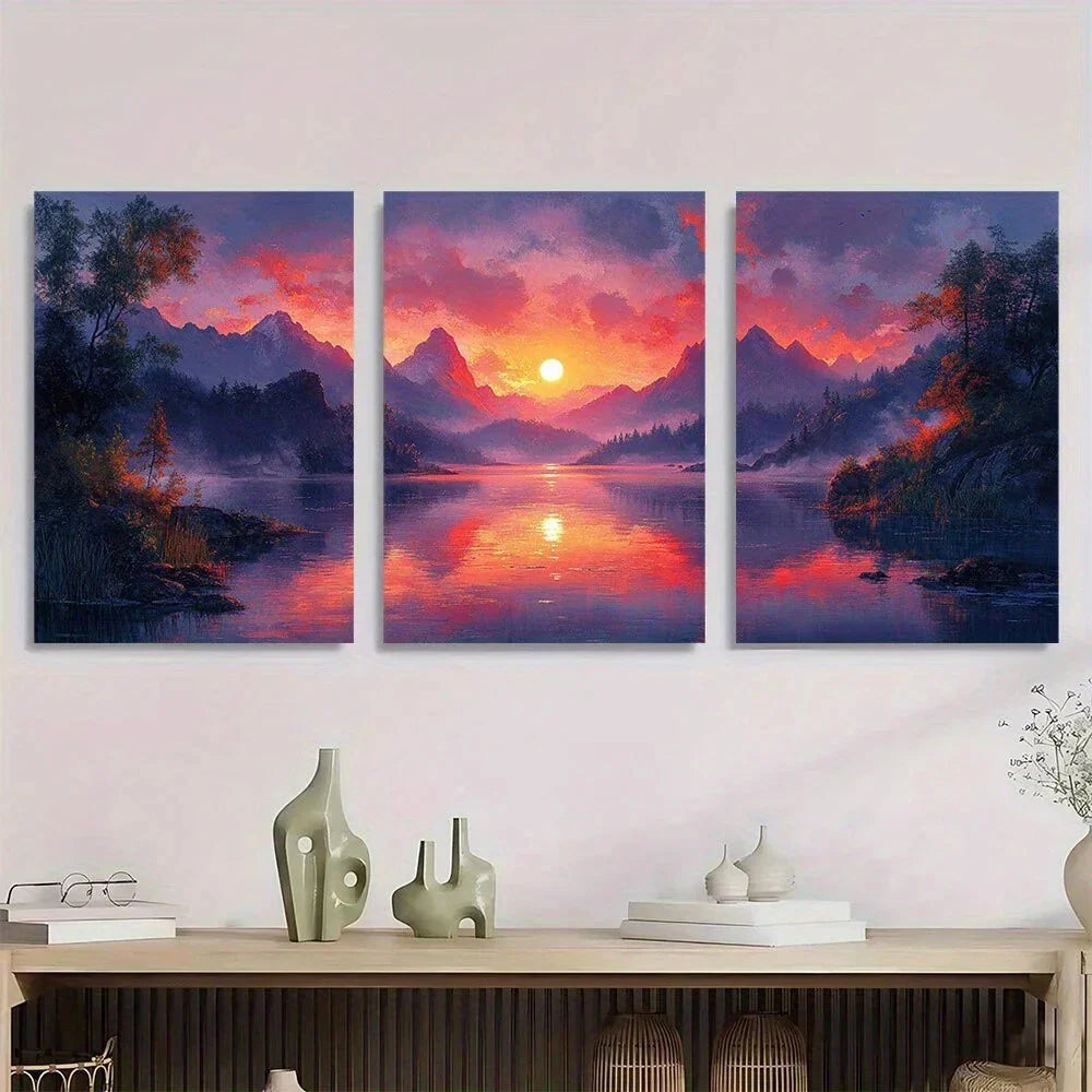 3pcs Nature Scenery Purple Themed Metal Print Ready to Hang Art