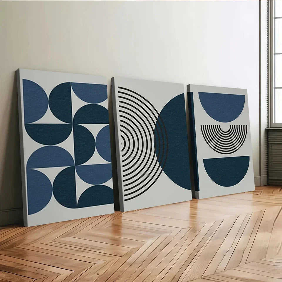 3pcs Navy Blue Bohemian Black Lines Modern Wall Art Set Canvas Framed 40x60cm - High Quality Print 100% Australian Made Wall Canvas Ready to Hang