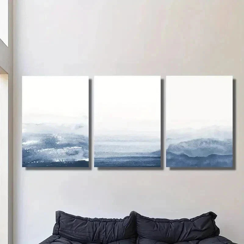 3pcs Navy Blue Gradient Abstract Wall Art Set Canvas Framed 40x60cm - High Quality Print 100% Australian Made Wall Canvas Ready to Hang