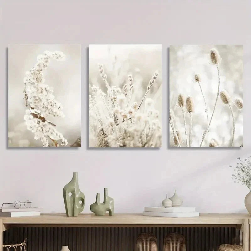 3pcs Neutral botanical prints, Metal Print Ready to Hang Art