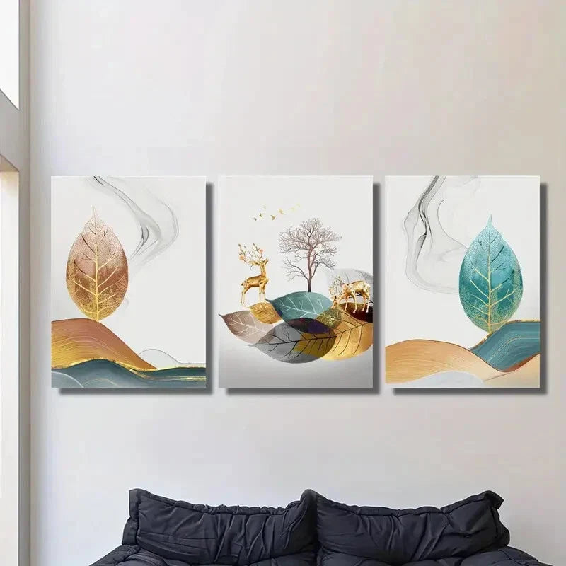 3pcs , New Chinese Style Simple Feng Shui Metal Print Ready to Hang Art