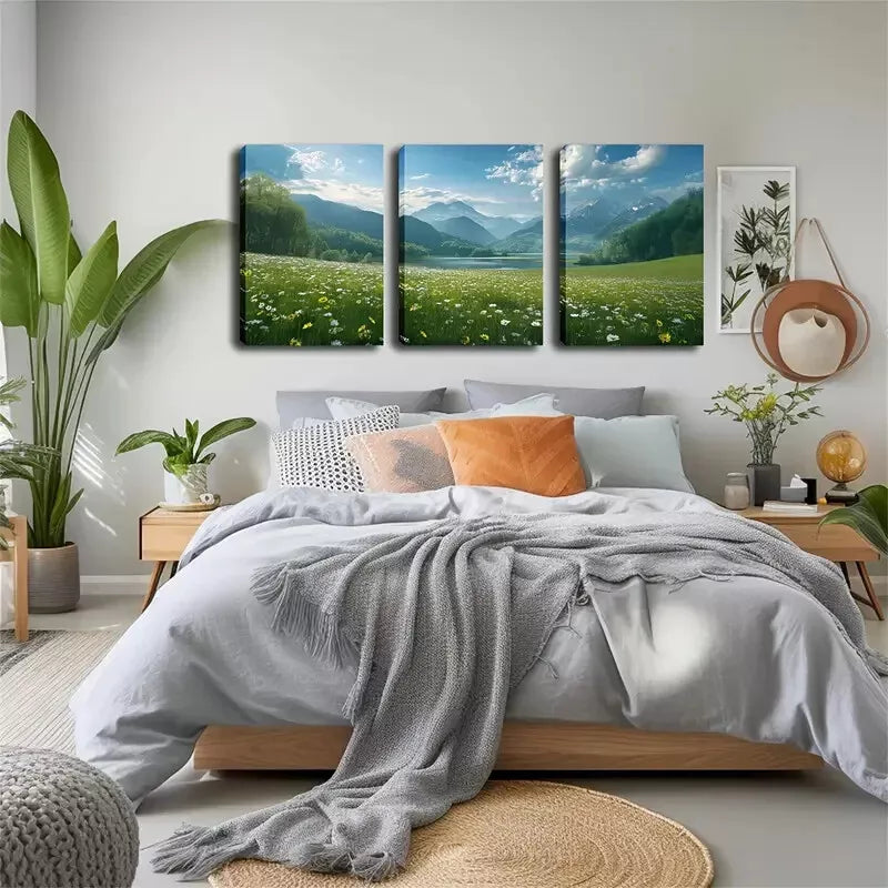 3pcs , Nice Grass And Small Flowers, Attractive Wall Art Set Canvas Framed 40x60cm - High Quality Print 100% Australian Made Wall Canvas Ready to Hang