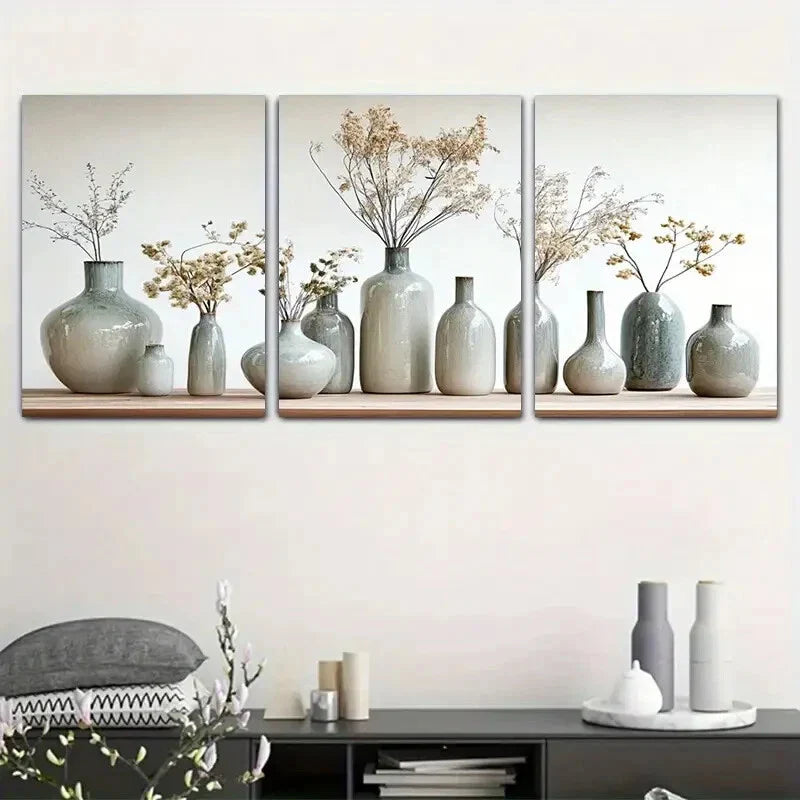 3pcs Nordic Style Ceramic Vase Metal Print Ready to Hang Art