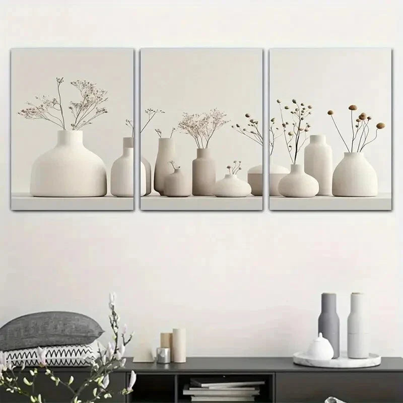 3pcs Nordic Style Delicate Vase Arrangement Metal Print Ready to Hang Art