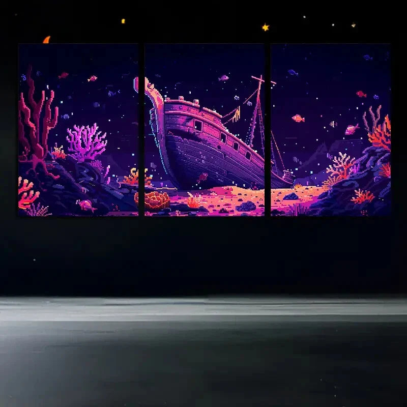 3pcs Ocean Origin Boat Purple Theme Metal Print Ready to Hang Art