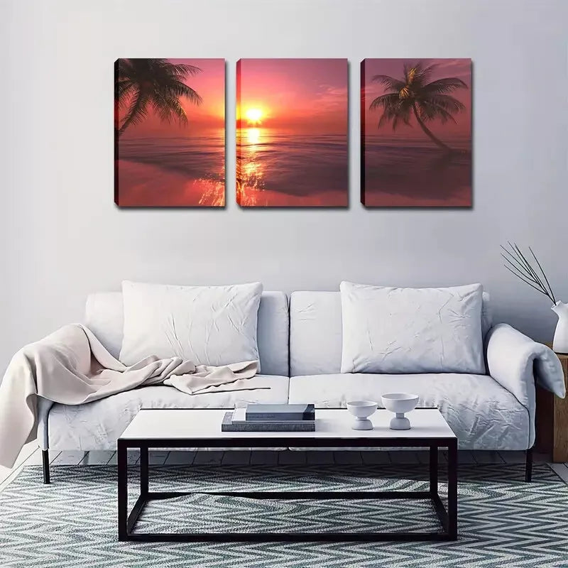 3pcs Ocean, Sunset, Coconut Tree Wall Art Set Canvas Framed 40x60cm - High Quality Print 100% Australian Made Wall Canvas Ready to Hang