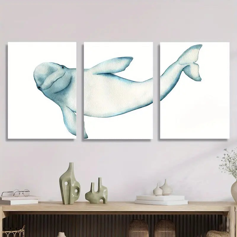 3pcs Ocean Whale Watercolor Nautical Blue Metal Print Ready to Hang Art
