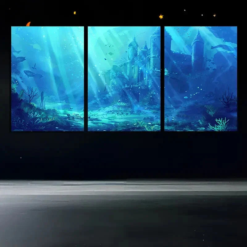 3pcs Oceanic Fantasy Underwater World Scenes Metal Print Ready to Hang Art