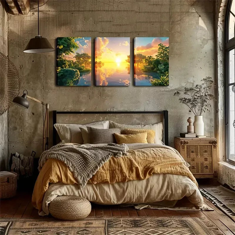3pcs Oil On Canvas, Lake And Sunrise Wall Art Set Canvas Framed 40x60cm - High Quality Print 100% Australian Made Wall Canvas Ready to Hang