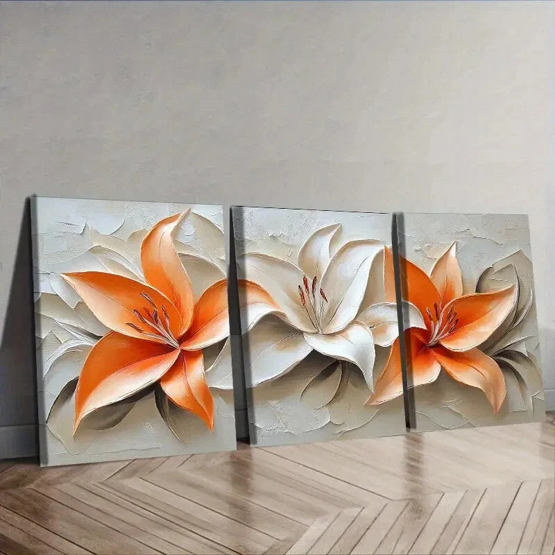 3pcs Oil painting orange lilies Wall Art Set Canvas Framed 40x60cm - High Quality Print 100% Australian Made Wall Canvas Ready to Hang