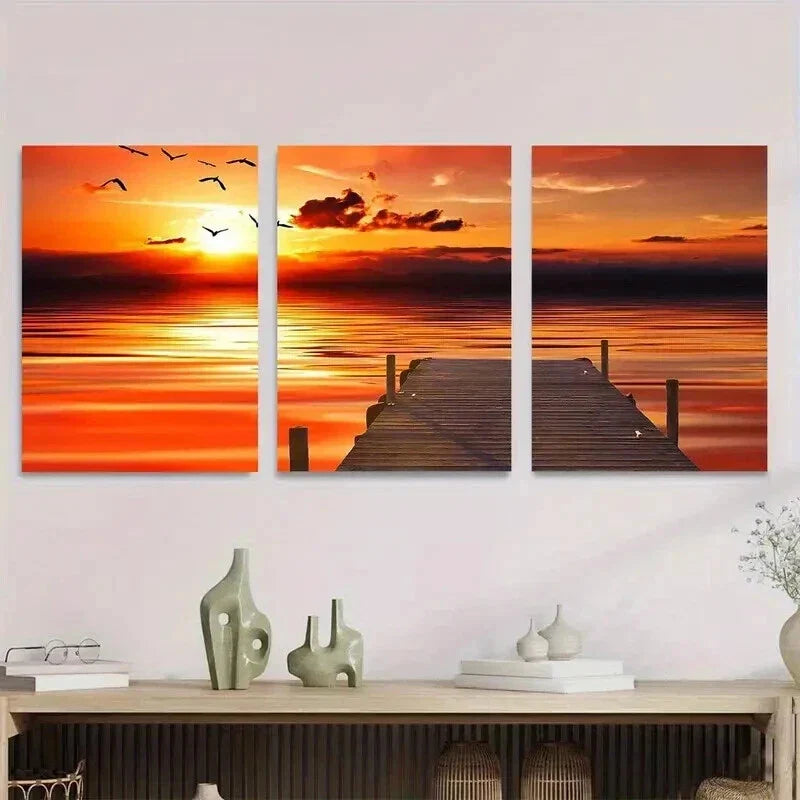 3pcs Orange Pink Blue Sunset With Birds Wall Art Set Canvas Framed 40x60cm - High Quality Print 100% Australian Made Wall Canvas Ready to Hang