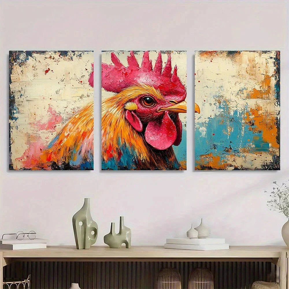 3pcs Paint Trendy Rooster Character Metal Print Ready to Hang Art