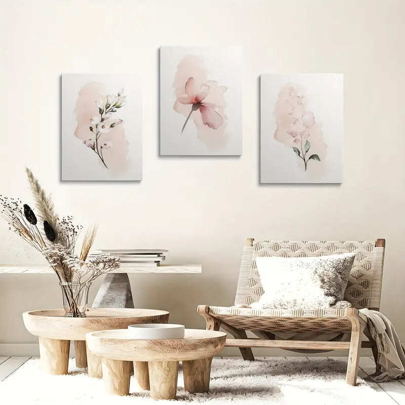 3pcs Painting Floral Pink Pattern Fashion Metal Print Ready to Hang Art