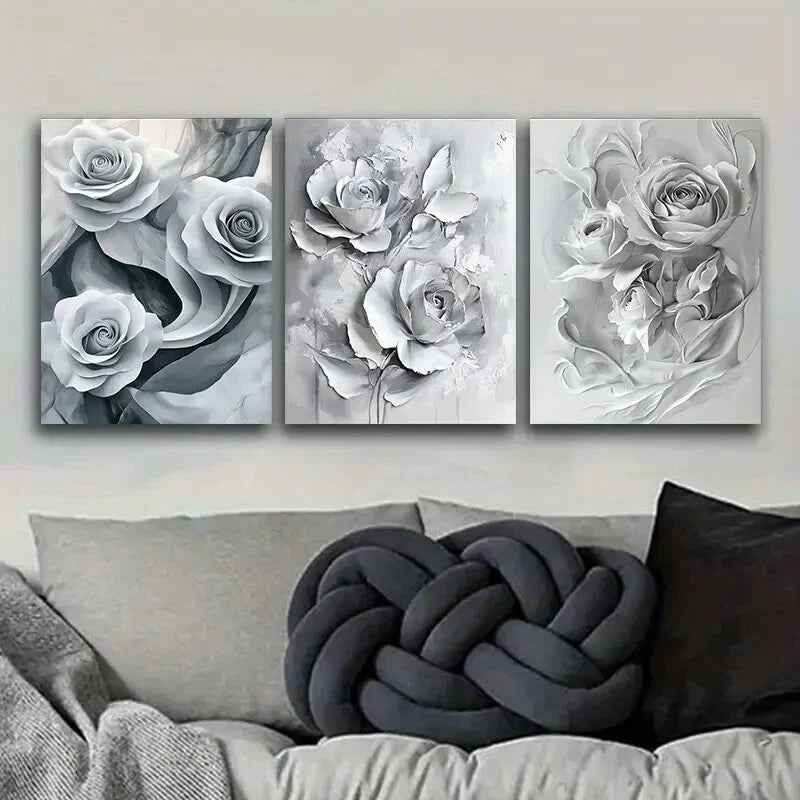 3pcs Paintings Featuring White Roses Floral Metal Print Ready to Hang Art