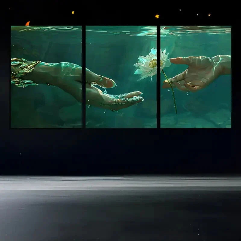 3pcs Palm Flower Two Hands Under Water Metal Print Ready to Hang Art