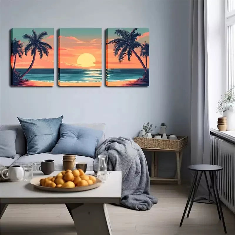 3pcs Palm Tree & Beach Scene Wall Art Set Canvas Framed 40x60cm - High Quality Print 100% Australian Made Wall Canvas Ready to Hang