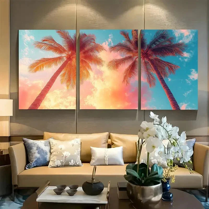 3pcs Palm Trees Blue Sky Sunlit Design Metal Print Ready to Hang Art
