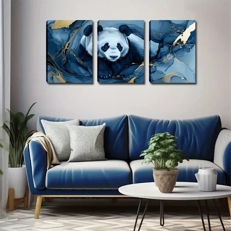 3pcs Panda Blue Golden Marble Abstract Perfect Wall Art Set Canvas Framed 40x60cm - High Quality Print 100% Australian Made Wall Canvas Ready to Hang