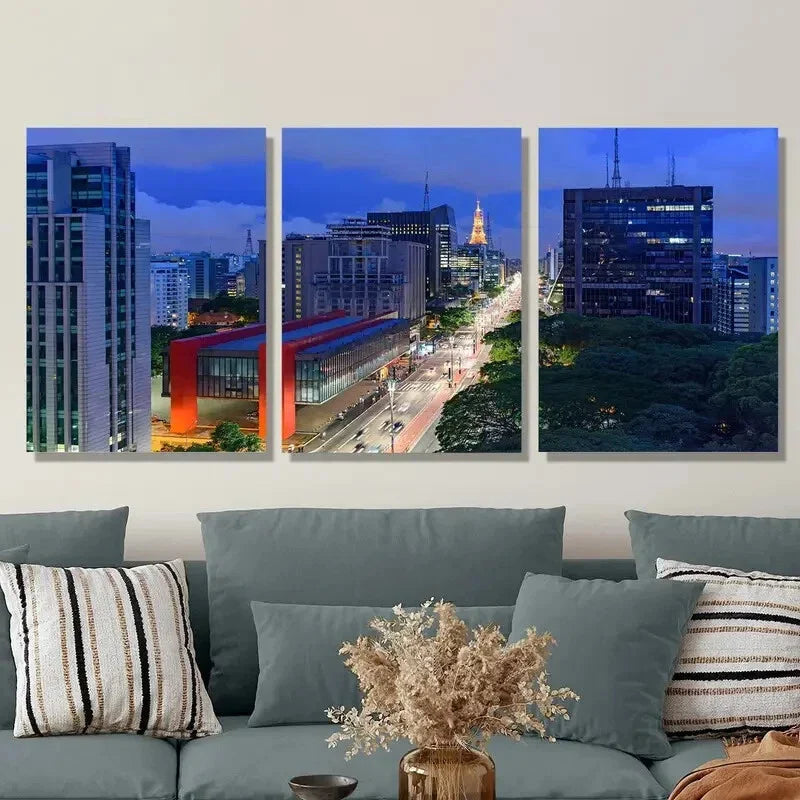 3pcs Paulista Avenue, city night scene, Metal Print Ready to Hang Art