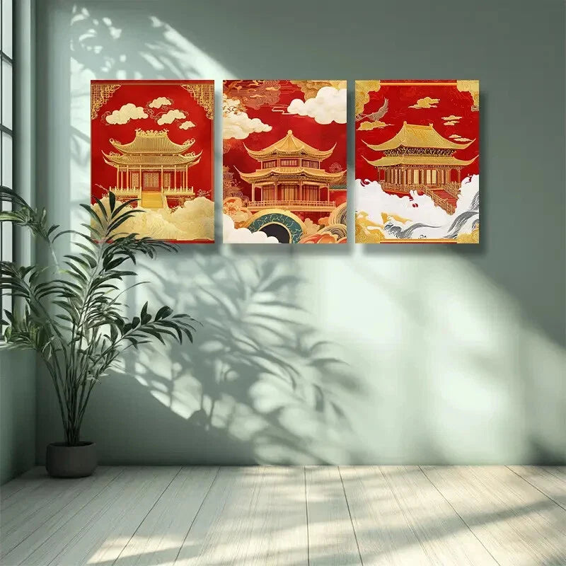 3pcs Pavilion Art Painting Wall Art Set Canvas Framed 40x60cm - High Quality Print 100% Australian Made Wall Canvas Ready to Hang