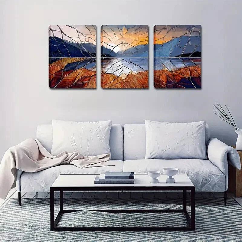 3pcs Cracked Sunrise Over a Mountain Lake Wall Art Set Canvas Framed 40x60cm - High Quality Print 100% Australian Made Wall Canvas Ready to Hang