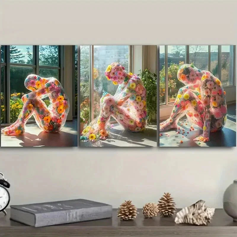 3pcs People made of flowers Metal Print Ready to Hang Art