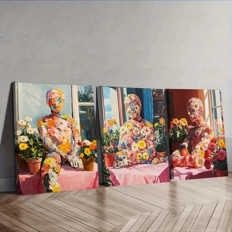 3pcs People made of flowers Wall Art Set Canvas Framed 40x60cm - High Quality Print 100% Australian Made Wall Canvas Ready to Hang