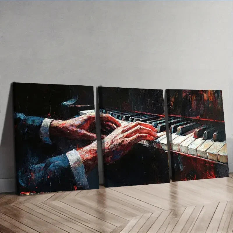 3pcs Piano Hand Close-Up Painting Dark Alone Wall Art Set Canvas Framed 40x60cm - High Quality Print 100% Australian Made Wall Canvas Ready to Hang
