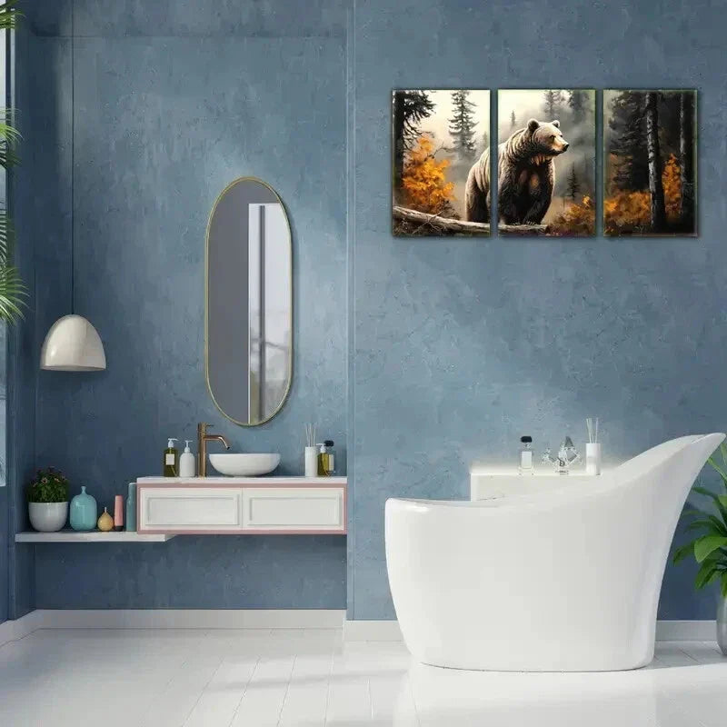 3pcs Pine Forest Bear in Autumn Woods Animal Metal Print Ready to Hang Art